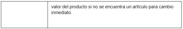 Si la devolución es por defectos de calidad o idoneidad (fallas de fabricación), se aplica nuestra Política de Garantía.