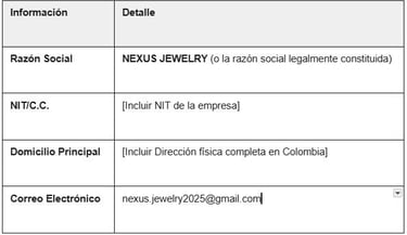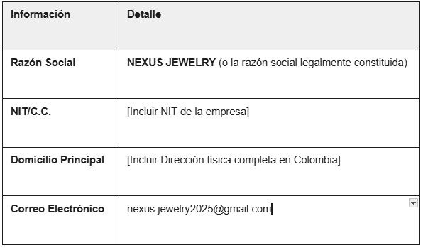 Política de Tratamiento de Datos Personales de NEXUS JEWELRY